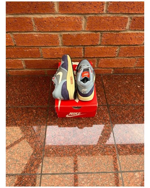 Nike Air Max 1 Essential ‘Blue Grey’ - UK 3.5 Nike Air Max 1 Essential ‘Blue Grey’ Authentic Brand New Size 3.5 UK This Nike Air Max 1 Essential in 'Blue Grey' is a low-top trainer for women in UK size 3.5 (US size 6). The shoe features a lace-up closure and rubber cleats, suitable for casual occasions and various activities like gym training, walking, and running. With a standard shoe width, this sneaker is part of the Nike Air Max product line and bears the iconic Max character. The design is inspired by a City, 90s, and Sports theme, making it a stylish and versatile addition to your footwear collection.