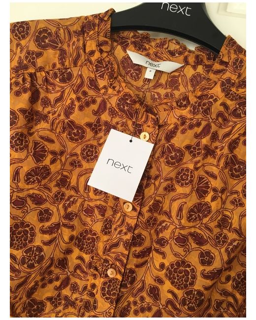 NEXT - BNWT pretty cotton mustard / burgundy long sleeved blouse, tags attached, size 8
