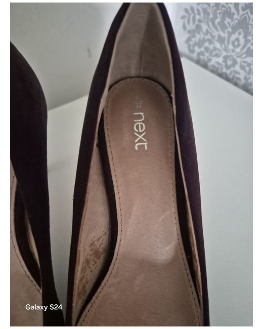 NEXT branded suede purple rounded heels, size 4. Have been tried at home, never been worn outside. Slight mark in the inner material on the left heel ( see pictures 4). Doesn't come in original box, will be packaged appropriately.