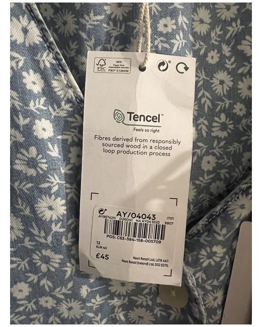 NEXT Blue Floral Print Denim TENCELSIZE 12 Uk. Condition is New with tags. Dispatched with Royal Mail 2nd Class.