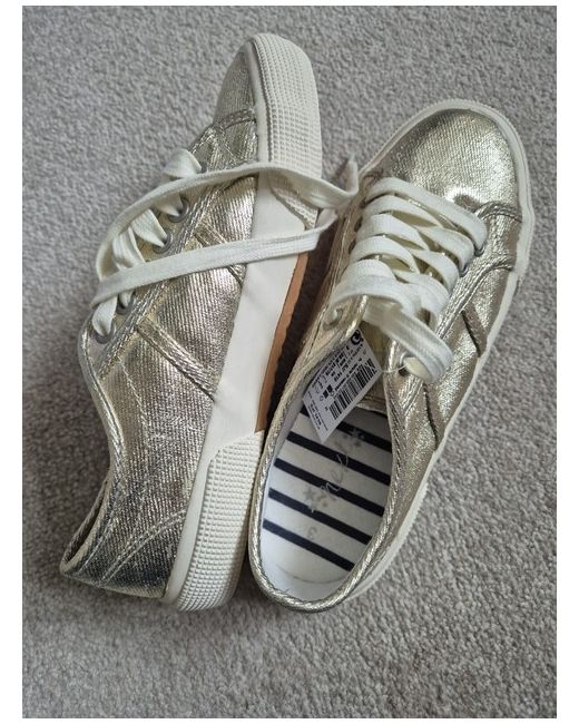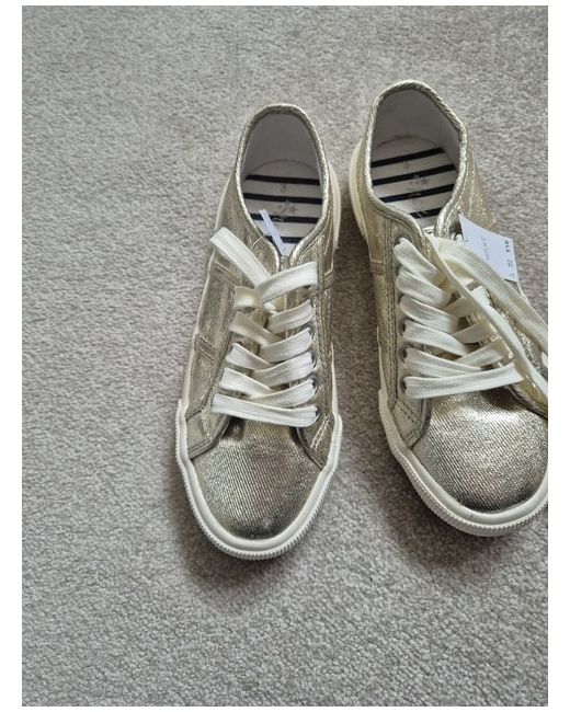 Elevate your sneaker game with these stunning gold trainers from NEXT. Perfect for women who want to make a statement, these trainers are made for those who love to stand out from the crowd. With a UK shoe size of 3, these trainers are designed to fit comfortably and provide all-day support. Featuring a sleek and stylish design, these trainers are perfect for any casual outfit. The gold colour adds a touch of glamour to your look, while the comfortable fit ensures that you can wear them all day long. Whether you're running errands or meeting up with friends, these trainers are the perfect addition to your shoe collection. * slight scratch on front of right shoe.