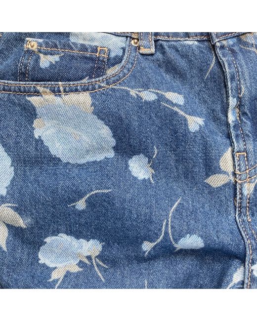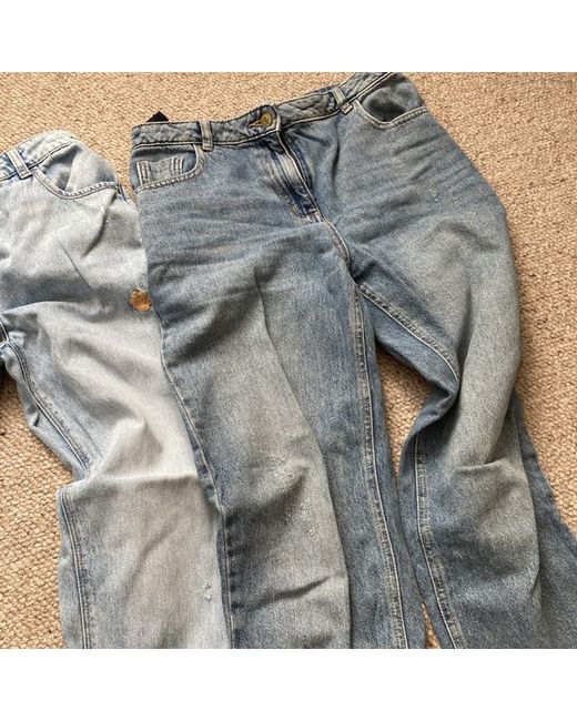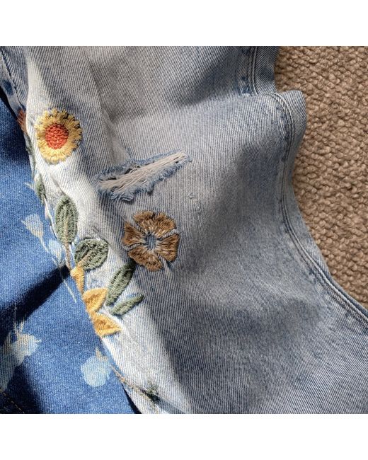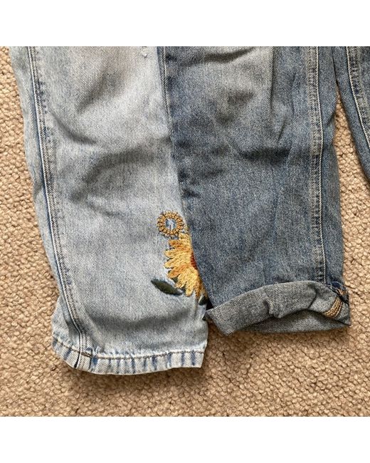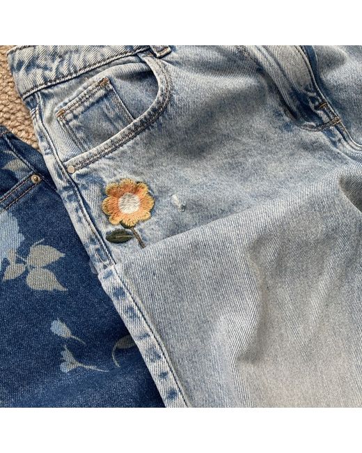 Three pairs of jeans One with rose print One with embroided flowers One mum style loose fit