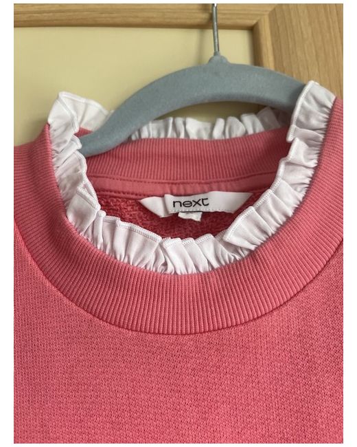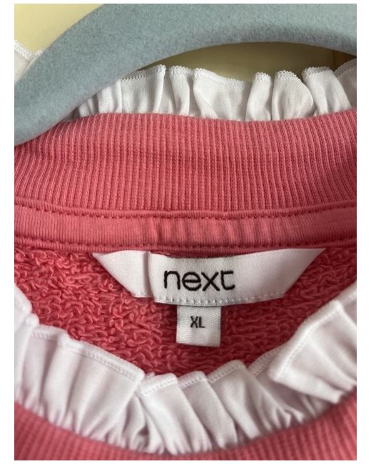 This beautiful pink sweatshirt from NEXT is perfect for any casual or travel occasion. The pullover style and XL size make it comfortable and easy to wear for women. The sweatshirt is made from high-quality cotton material. Has an unusual collar.