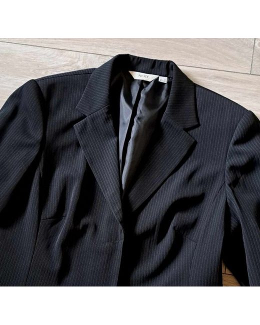 Women's Black Fine Pinstriped Jacket Tailored Workwear Smart Office Interview UK14