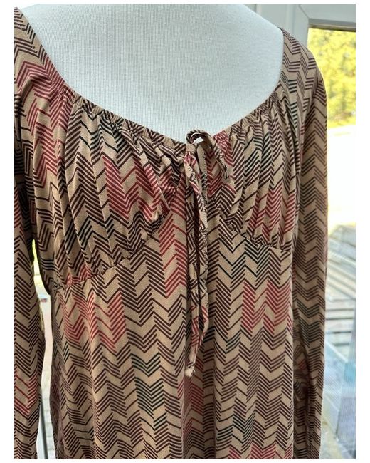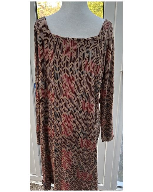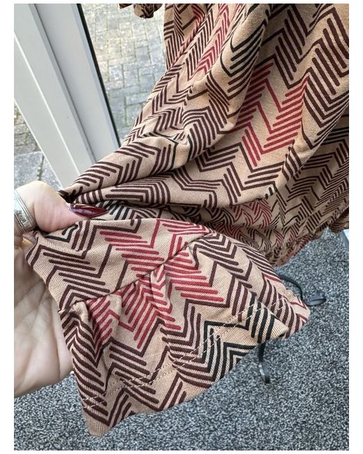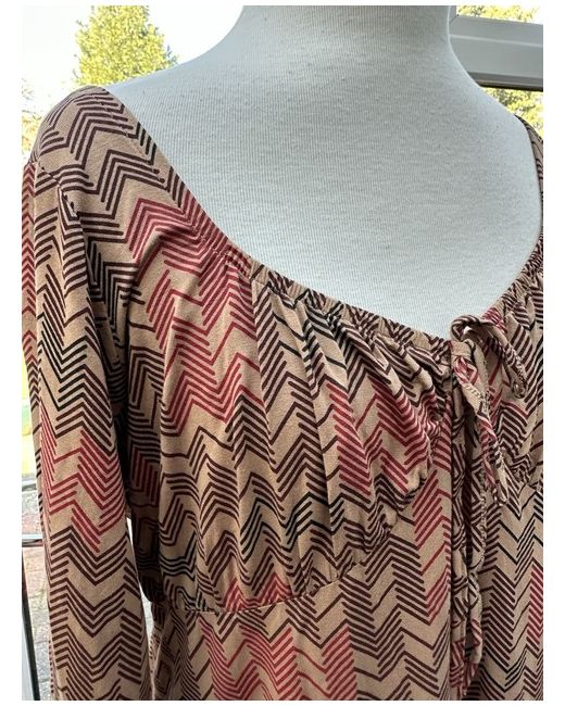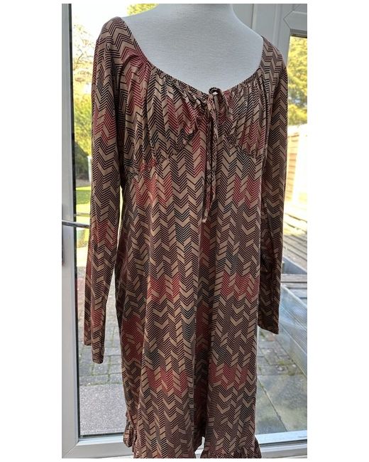Women's Brown Boho Retro Geometric Pattern Long Sleeve Ruffle Hem Dress UK 18 NEW