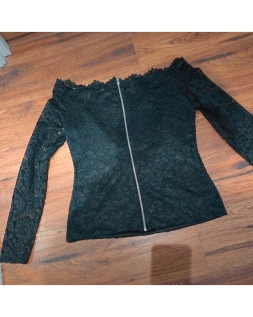And Black Leopard Print Ribbed Sheer Collared Blouse M NEW