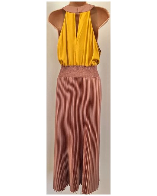 The gold brown colour is perfect for any occasion and will make you stand out in a crowd. The neck button closure adds a touch of sophistication to the dress, making it perfect for formal events or a night out with friends.