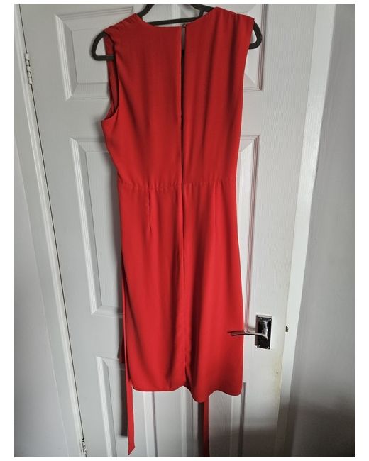 Embrace elegance with the Next Red Sleeveless Dress, an impeccable choice for various formal occasions. This knee-length pencil dress, in a vibrant red hue, features a flattering V-neckline and a convenient zip closure at the back, ensuring a seamless silhouette for a size 16. The sleeveless design makes it a chic option for summer weddings or evening cocktail parties. Crafted from durable polyester, this dress promises both comfort and ease of care, being machine washable. Its timeless style without any pattern allows for versatile accessorising, whether you're adding a dash of colour with a bold clutch or keeping it classic with neutral tones. The dress is a testament to NEXT's commitment to quality and style for every woman's wardrobe.