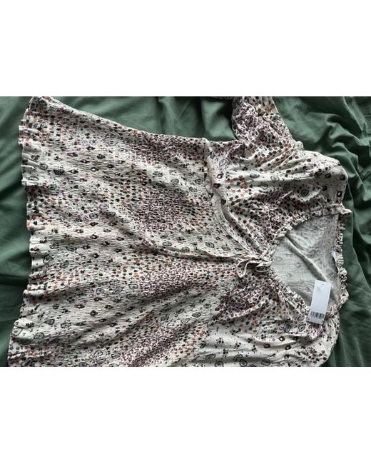 Paisley patterned, tie v next with flute cuff and gather body. New with tags