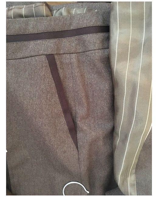 Trousers have 2 front pockets, a Zip and button fastening. 98% Wool, 2% Lycra/Elastane. Blazer lining 50% Viscose and 50% Acetate.