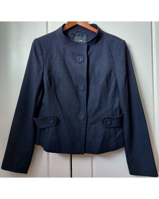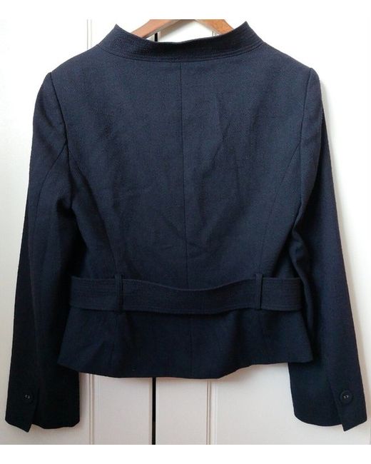 Dark blue blazer/overcoat Size UK 12 L: approx. 24" W: 17" (shoulder-to-shoulder) Sleeves: approx. 24.5" Inner lining: 100% polyester Outer lining: 78% polyester, 22% viscose