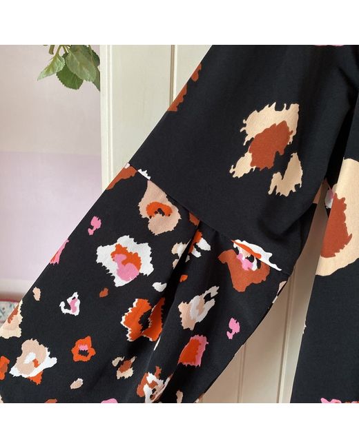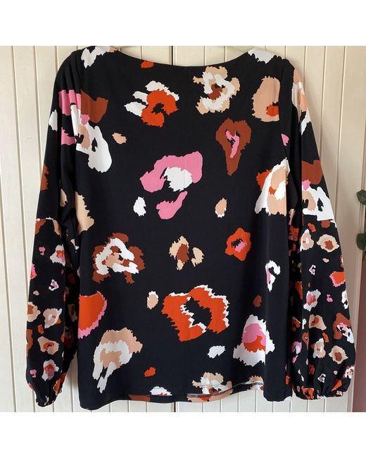 Womens Black Tan Animal Print Boxy Blouse Top 10 BNWT