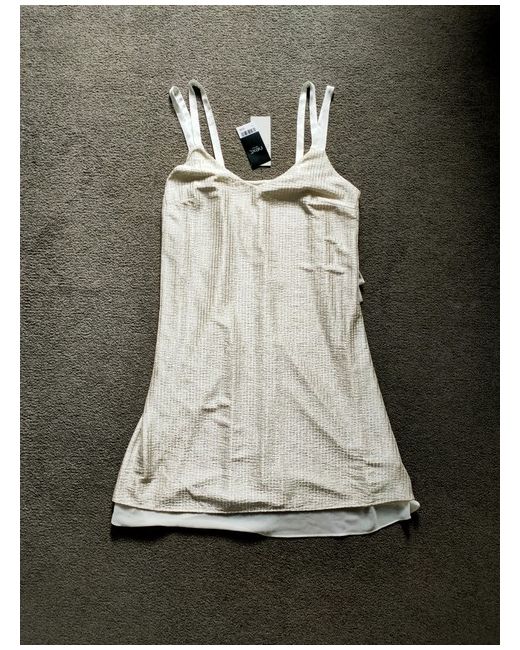 NEW Elegant Metallic Ivory Flow Shift Knee Length Dress UK14