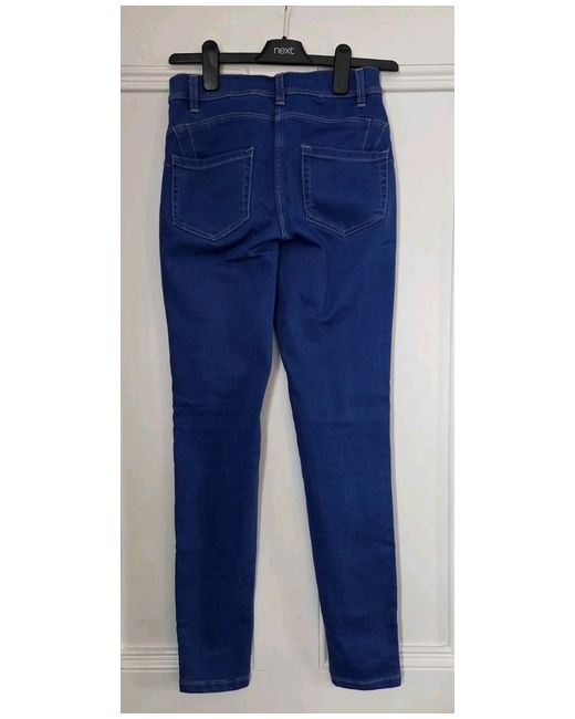 Blue Super Stretch Soft Sculpt Legging Pull-On Denim Jeans in size 6R are a stylish addition to any woman's wardrobe. These skinny-fit jeans are made from vibrant blue denim fabric, giving them a sleek and modern look. The stretch feature ensures a comfortable and flattering fit, while the skinny style adds a chic touch to any outfit. Perfect for everyday wear, these pull-on jeans from the NEXT brand offer both quality and style for the fashion-forward woman. Come from a smoke-free, pet-free home.