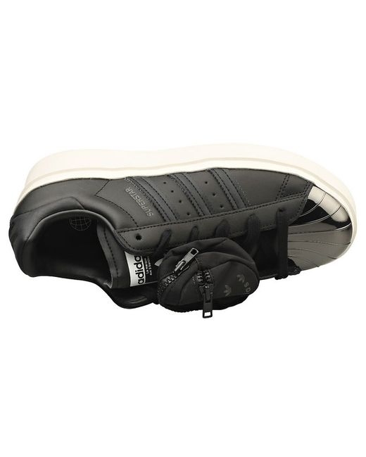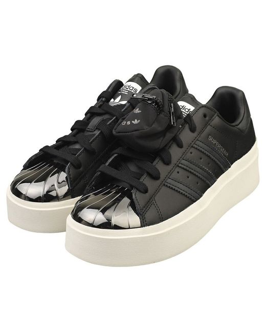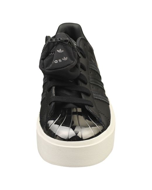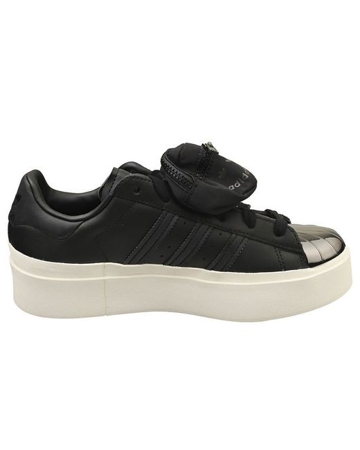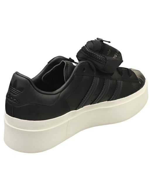 Step out in timeless style with these adidas Superstar Bonega platform trainers. Crafted from a blend of sleek leather and durable synthetic materials, they effortlessly combine classic appeal with modern edge. The black and white colorway is versatile and easy to incorporate into any outfit, while the textured textile lining and cushioned textile insole ensure maximum comfort throughout your day. A chunky rubber sole adds height and personality, perfect for making a statement with every stride. Securely fastened with laces, these trainers are as practical as they are stylish, ideal for everyday wear and casual outings alike.
