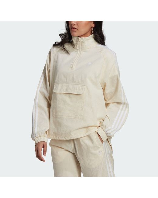 Adidas Adicolour Classics Poplin 1/4 Zip Windbreaker. Cream/White. Kangaroo style pouch pocket. New without tags. Woman’s size 10 UK.