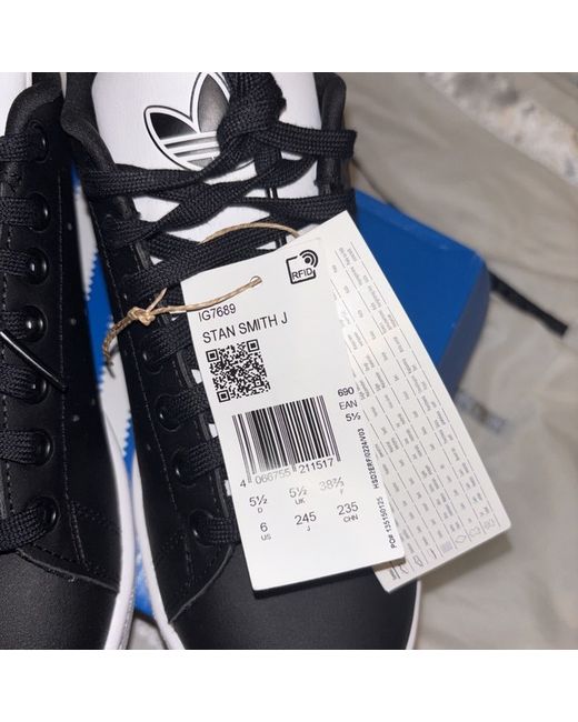 Crafted for style and comfort, the adidas Stan Smith trainers are a testament to classic fashion. These sneakers feature a sleek black leather upper, complemented by the iconic adidas logo accent, making them a versatile addition to any wardrobe. With a size 5.5 UK fit, they're designed to offer both a snug feel and enough room for day-long wear.