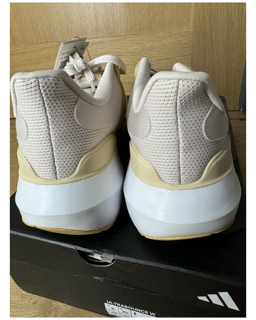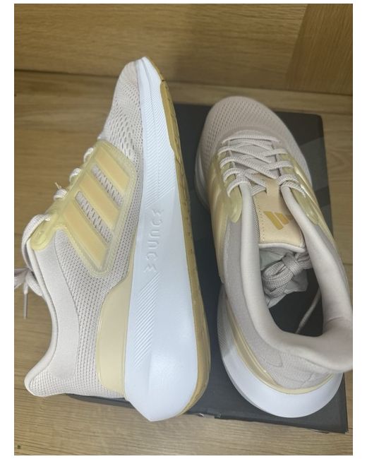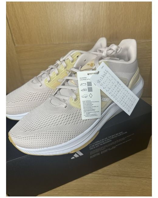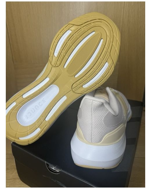 Designed to provide maximum comfort and support, these trainers feature a beige colorway with the iconic Adidas stripes.