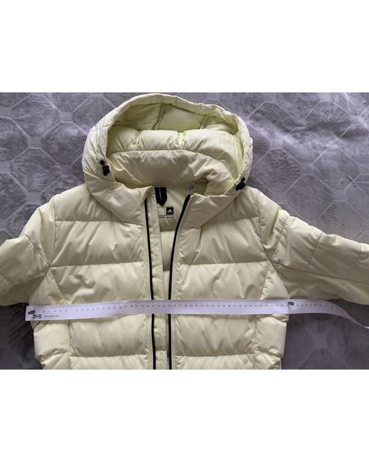 Stay warm and stylish this season with this adidas women's jacket. Crafted from softshell fabric with a full zip accent, this mid-length puffer jacket is perfect for autumn, winter, and spring. The jacket features a green colour, size L, and is designed for regular size women. The jacket is lined with cotton and has outer shell material made of cotton. It's perfect for sports-themed outfits and is branded by adidas. The jacket has a single zip and is suitable for wear during any season. Get this jacket today and stay warm while you look fabulous.