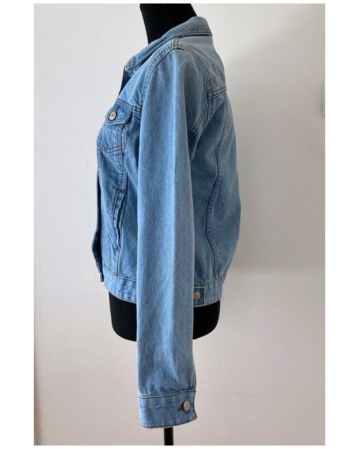 Primark Light Blue Denim Jacket Size 10 BNWT. Length from back of neck 21.5”; underarm sleeve length 18.5”; pit to pit width when fastened 18”; shoulder width from neck 5”. New with tags.