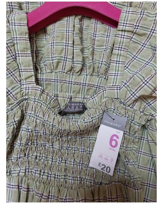 Primark maxi dress Size 6. Green, black and cream with rouched bodice. New with tags 61% cotton