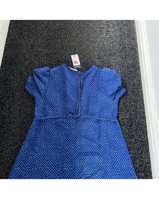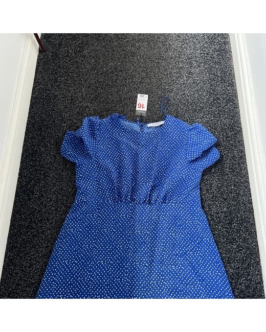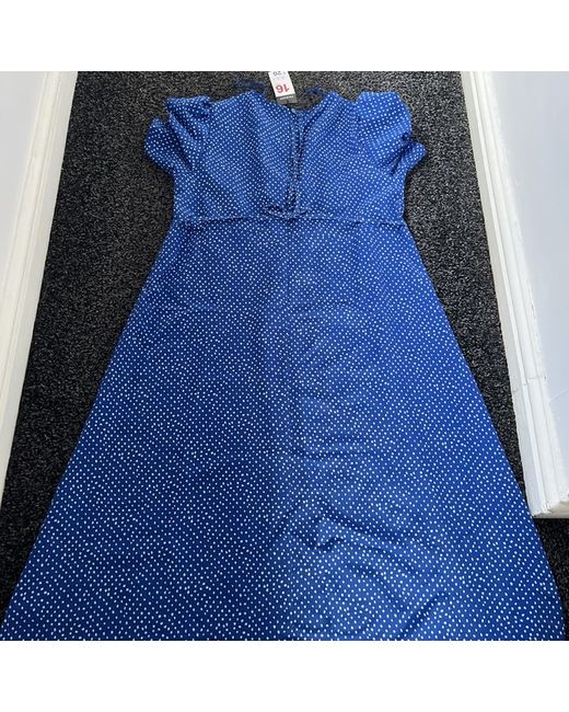 Elevate your wardrobe with this stunning blue maxi dress from Primark. With a size of 16 and a regular fit, this dress is perfect for any woman looking for style and comfort. The midi length of the dress adds a touch of elegance, making it perfect for any occasion. The dress is designed with a beautiful blue colour that is perfect for the summer season. The style of the dress is simple yet chic, making it perfect for any woman who wants to look their best. The dress is available in the Clothes, Shoes & Accessories, Women, Women's Clothing, Dresses categories. Get your hands on this dress now and look fabulous. Lovely blue polka dot dress as new never hot round to return shame for it to hang in wardrobe