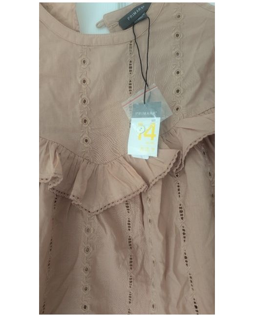 The Raffle Blouse in Dusty Pink by Primark is a stylish and versatile addition to any woman's wardrobe. Made from comfortable cotton fabric, this blouse features a broidered pattern, 3/4 sleeves, and a regular fit. Ideal for casual occasions in the spring and summer seasons, this blouse in size 14 is machine washable for easy care. Add a touch of femininity to your outfit with this pretty pink blouse, perfect for pairing with jeans or trousers for a chic look.