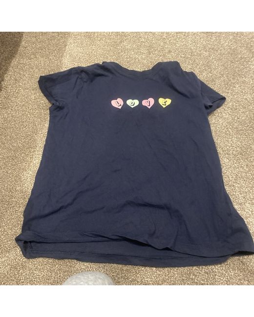 This darkish blue cotton top from Primark is perfect for any casual occasion. With a love heart pattern and "has love in each letter, has a heart" slogan, it's a great addition to any wardrobe. The short sleeve top is a size M and has a normal length, making it ideal for any season - winter, autumn, summer or spring. The fabric type is cotton, ensuring comfort and breathability. The dress length is a normal top, making it versatile and easy to pair with jeans or skirts. This Women's Clothing item is a must-have for any fashion-conscious woman who wants to add a touch of love to her wardrobe.