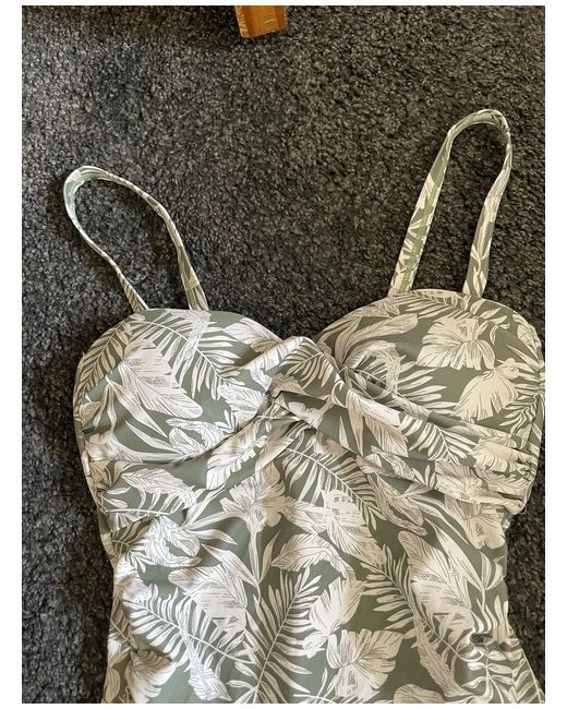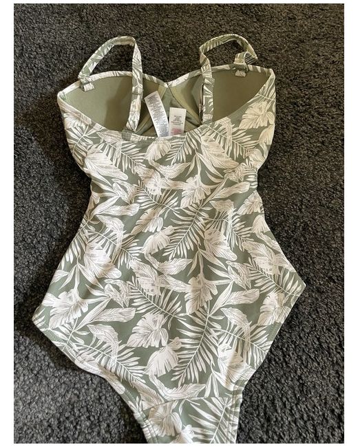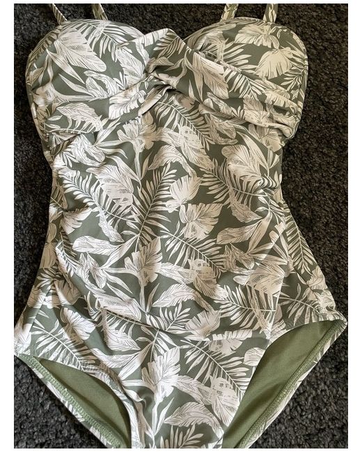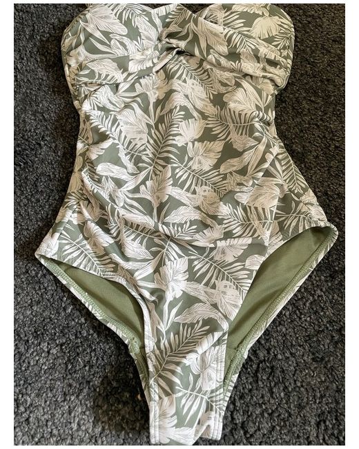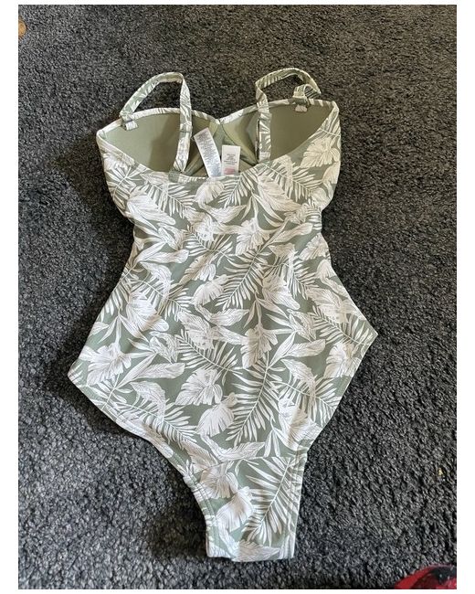 Get ready to make a statement at the beach with this stunning green one-piece swimsuit from Primark. The floral pattern adds a touch of elegance to your outfit, making you stand out from the crowd. Designed for women of all sizes, this swimsuit is available in size 6 and features a regular fit that flatters your figure. Crafted from high-quality materials, this swimsuit is built to last. The green colour is perfect for those who want to add a pop of colour to their wardrobe. Whether you're lounging by the pool or taking a dip in the ocean, this swimsuit is the perfect choice.