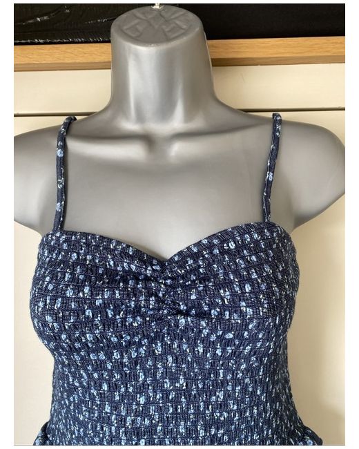 Embrace the charm of sunny days with this Primark Navy Floral Camisole Top. Designed for those who appreciate a touch of elegance in their casual wear, this top features a delightful sweetheart neckline and airy spaghetti straps that lead to an elasticated frilly hem, providing a flattering and comfortable fit. Crafted from a blend of viscose, polyester, and elastane, this camisole is ideal for both spring and summer occasions, be it a leisurely stroll or a day out. The sleeveless design allows for ease of movement while the pullover closure ensures a seamless silhouette. The top is complete with a lovely floral pattern that adds a dash of femininity to your ensemble.