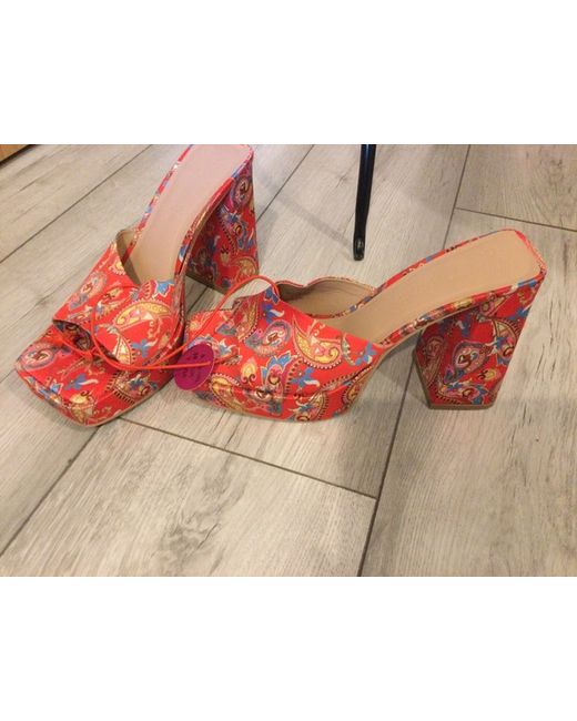 Women's Red Platform Mules 5
