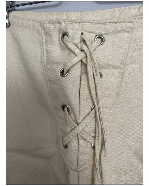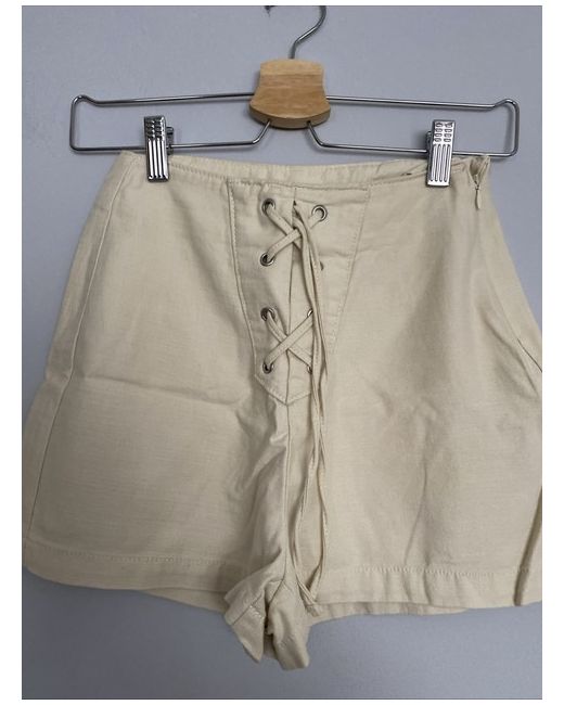 These woman's beige shorts from Primark are perfect for a casual occasion. They come in size 4 and have a mid-rise waistline with a zip closure. Made of cotton material, these culotte-style shorts have a regular fit and are not handmade. The shorts are not vintage and cannot be personalised. They have been manufactured in Bangladesh. These shorts are a great addition to any wardrobe and can be worn during the summer months.