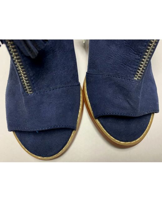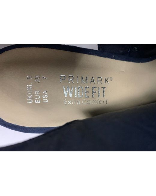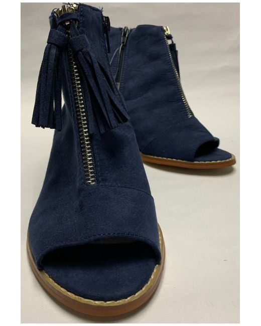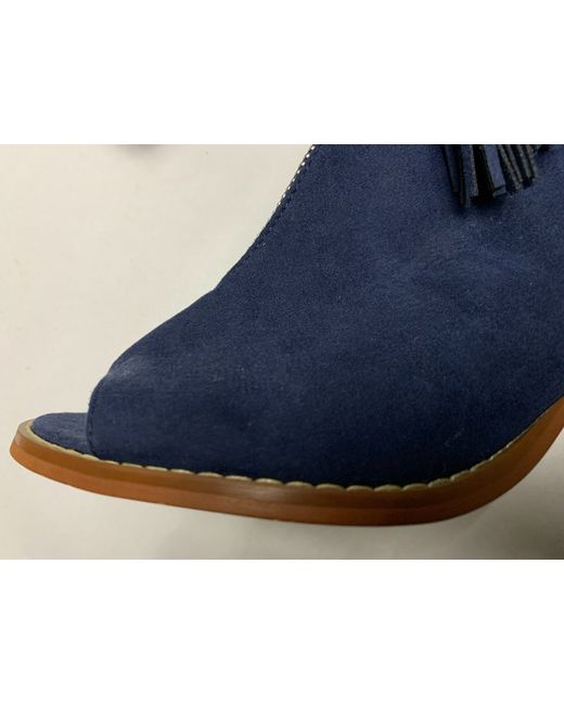 PRIMARK - NAVY BLUE FAUX SUEDE SHOE BOOT - SIZE 5 (EU 38). SLING BACK. BLUE SIDE ZIP FASTENER TO INSIDE EDGE. OPEN ROUND TOE. 7cm BLOCK HEEL. SILVER FRONT ZIP DECORATION WITH TWO TASSLES ATTACHED TO TOP OF ZIP.