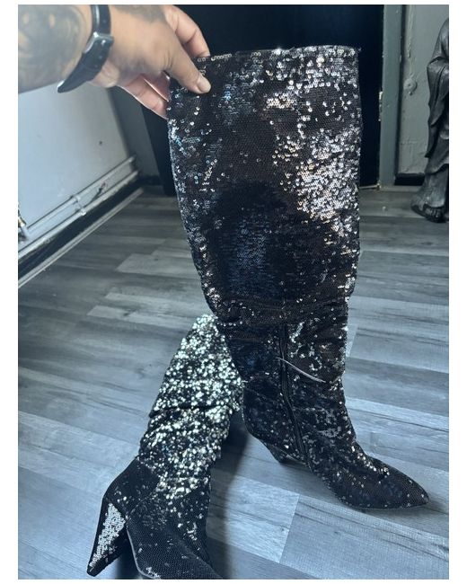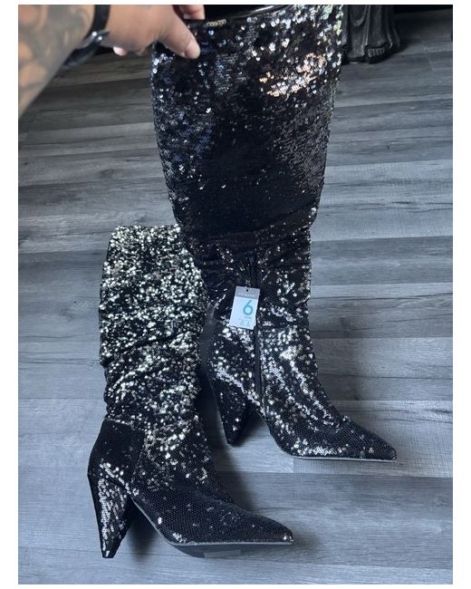 Elevate your footwear collection with these stylish over-the-knee boots from Primark, adorned with eye-catching sequin accents. A versatile black hue ensures they pair seamlessly with any outfit, making them a perfect choice. Whether you're stepping out for a day in the city or dressing up for an evening event, these boots will elevate your look effortlessly.