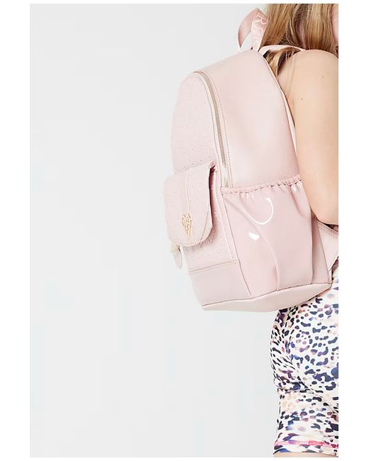 Embossed RI monogram design. Front pocket. Side Pocket Water bottle holder. Wipe Clean. Heart RI hardware.