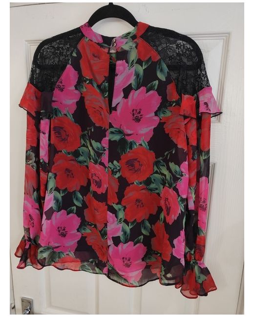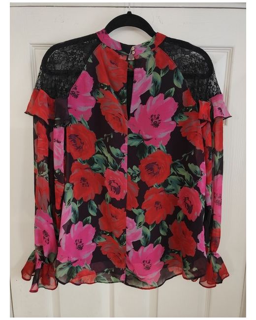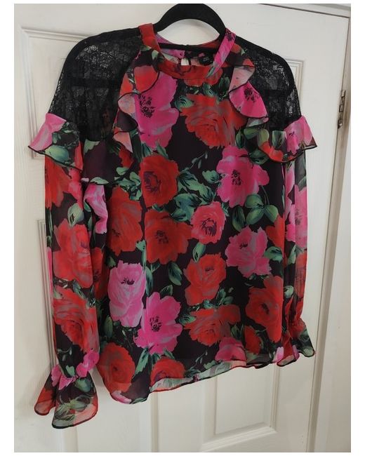Elevate your wardrobe with the River Island Floral Blouse, a stunning piece that captures the essence of spring and summer. This multicoloured top, adorned with a delicate floral pattern, is a perfect match for any casual, party, or wedding event. The high-neck design and long sleeves offer a touch of sophistication, while the ruffle accents add a playful flair. Crafted from polyester for comfort and ease, the blouse is available in size 16 and ensures a regular fit for a beautiful silhouette. Whether paired with jeans for a day out or dressed up for an evening cocktail, this blouse is versatile enough to suit various occasions and seasons.