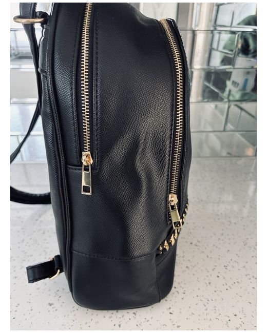 The River Island large black backpack with gold hardware is a stylish and practical choice for casual occasions. Made from faux leather, this backpack features a zip closure, black handles/straps, and a black lining. The gold hardware adds a touch of luxury to the overall design. Perfect for women looking for a spacious and trendy backpack from a reputable brand like River Island.