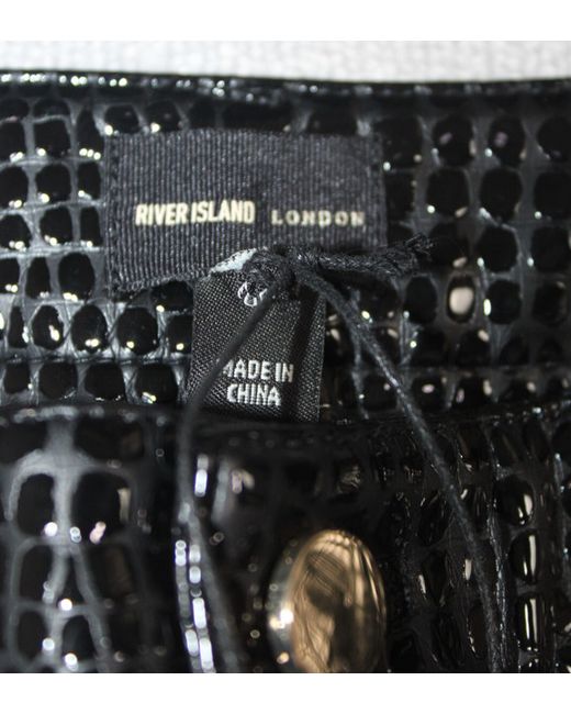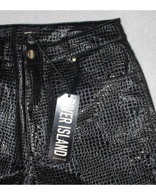 River Island Ladies Trousers Loose Fit Shiny Snake Skin Look Black - Size 12. Colour - Black. ----- THE CLOTHING HARROW -----.
