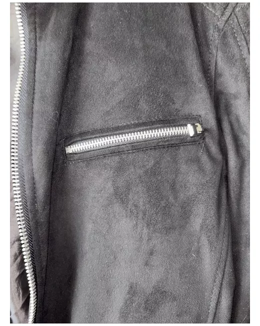 The jacket features a short length, combining modern style with practicality, and includes a convenient zip closure for easy wear.
