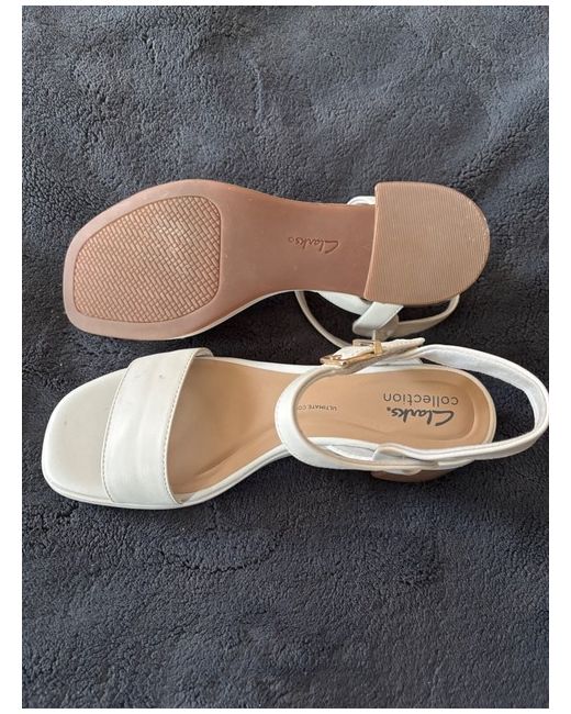 These Clarks white sandals in size 6 are a stylish choice for women. Made from leather with a low block heel, they offer comfort and sophistication. The classic white colour and sleek design make them versatile for various outfits, perfect for keeping your feet looking stylish all summer long.