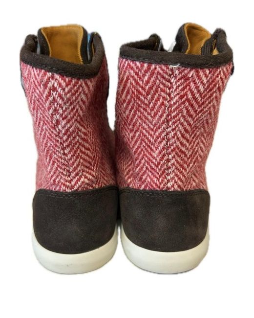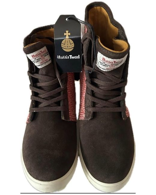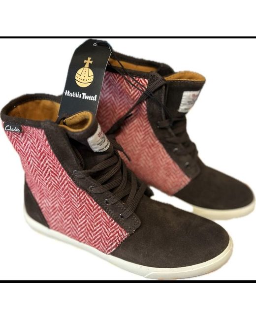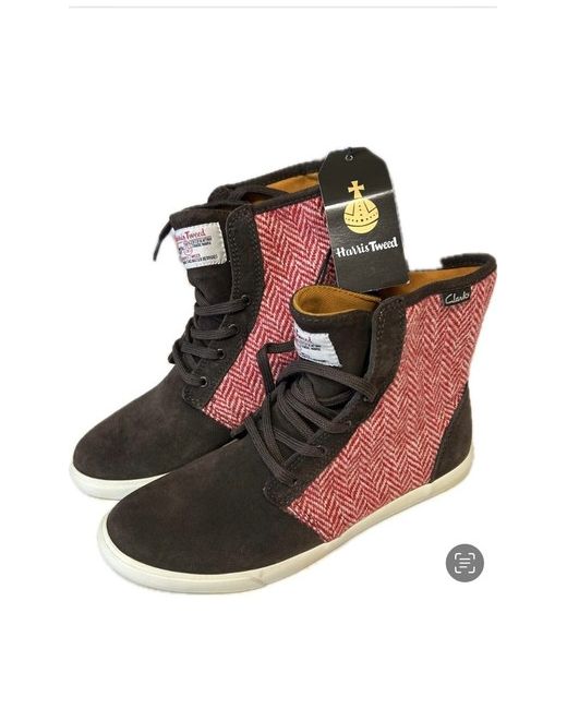 Step out in style with these Clarks ladies fun boots in size 5. These boots are perfect for any fashion-conscious woman who wants to make a statement. The upper material is made of a part wool Harris Tweed which adds a touch of sophistication to the overall design. The boots come in a warm brown colour that will complement any outfit. These boots are perfect for any occasion and are a must-have for any boot lover. The style is unique and versatile, making it suitable for any season. Whether you're going for a casual look or dressing up for a night out, these boots are sure to stand out.