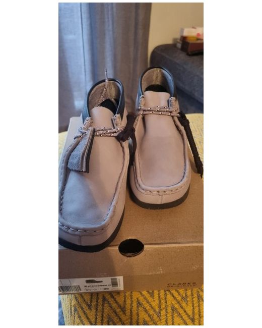 Elevate your shoe game with these stylish Clarks Wallabee flats. Crafted from premium grey suede, these loafers are perfect for any occasion. The round toe shape and flat design provide ultimate comfort, while the sleek style adds a touch of sophistication to your outfit. These Wallabee flats are a UK size 5.5, EU size 39 and are perfect for women who want to make a statement with their footwear. The Clarks brand is synonymous with quality and these shoes are no exception. Don't miss out on the chance to add these versatile flats to your wardrobe.