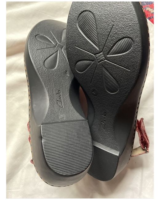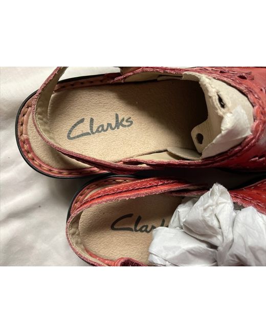 Clarks Red Leather Clogs Size 4. Velcro heal straps Rut red faded in areas