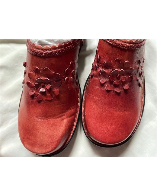 Women's Red Rust Leather Clogs 4