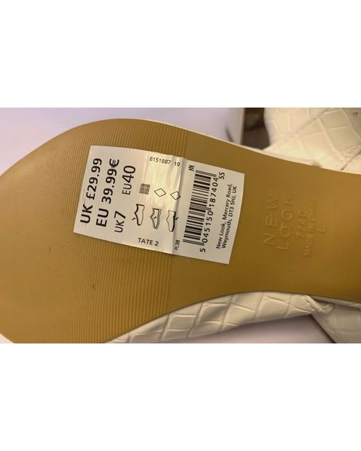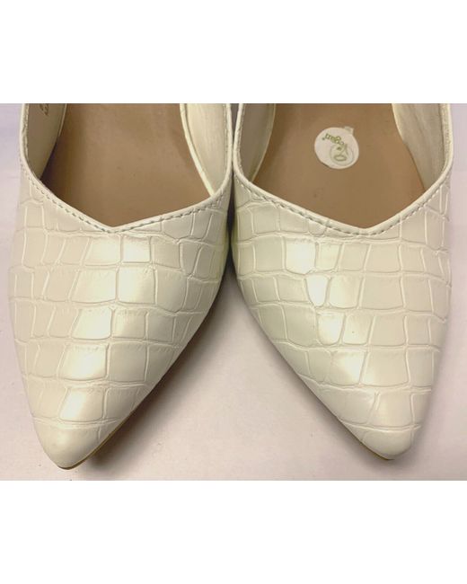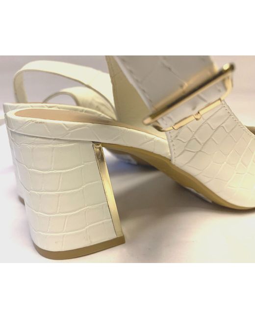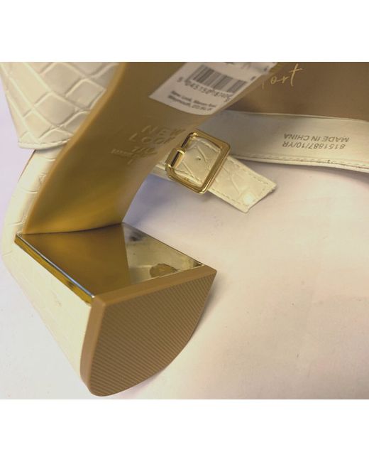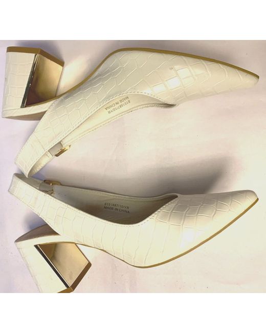 BRIGHT WHITE SLINGBACKS. NEW LOOK - SOFT LEATHER CROCODILE EFFECT SLINGBACK SHOES - SIZE 7. 6cm BLOCK HEEL. HEEL IS WHITE WITH A SHINY GOLD INSIDE EDGE & TRIM. POINTED TOE. "LOVE COMFORT" RANGE FROM NEW LOOK.