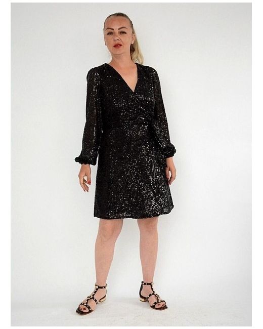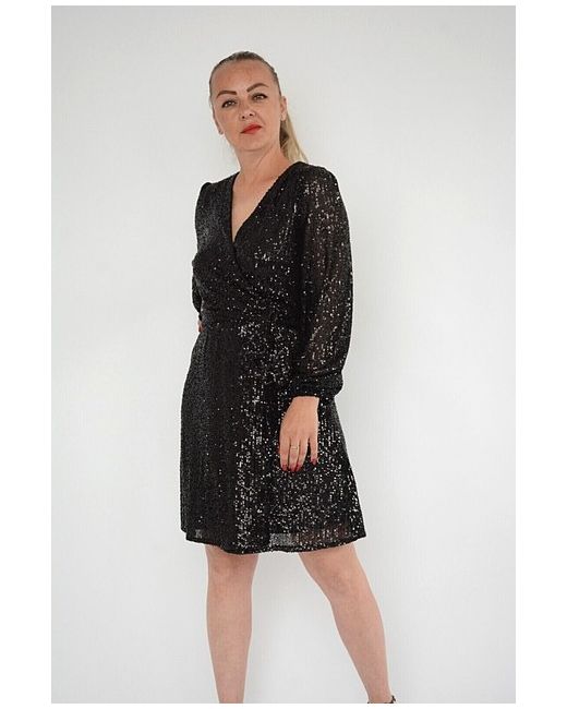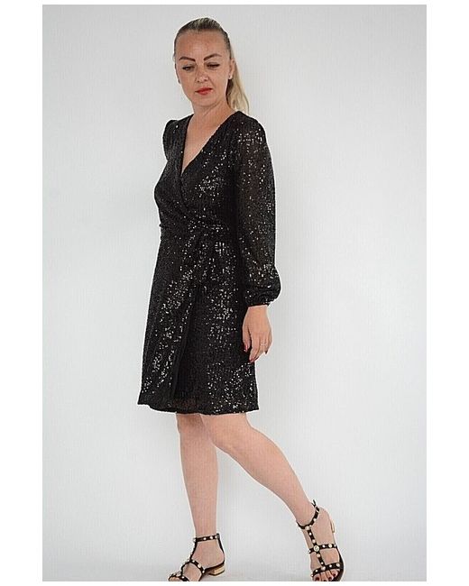 BLACK ALL OVER SEQUIN. PARTY DRESS. WRAP OVER FRONT. WASH WITH CARE. MACHINE WASHABLE. Our model wears a UK 8/ EU 36/ US 4 and is 160.02 cm / 5' 3" tall. 100% POLYESTER LINING. 93% POLYESTER 7% ELASTANE MAIN.
