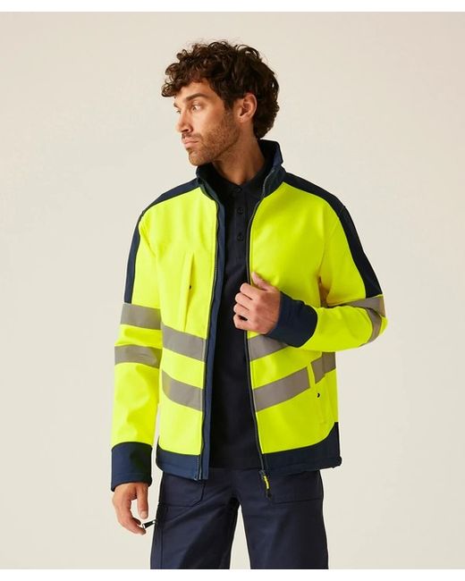 Regatta Professional Hi-Vis Pro Soft Shell Jacket. This Regatta high-vis pro softshell jacket combines comfort, protection and visibility. Special features - EN ISO 20471:2013 +A1:2016 Class 2. 2 zipped lower pockets.