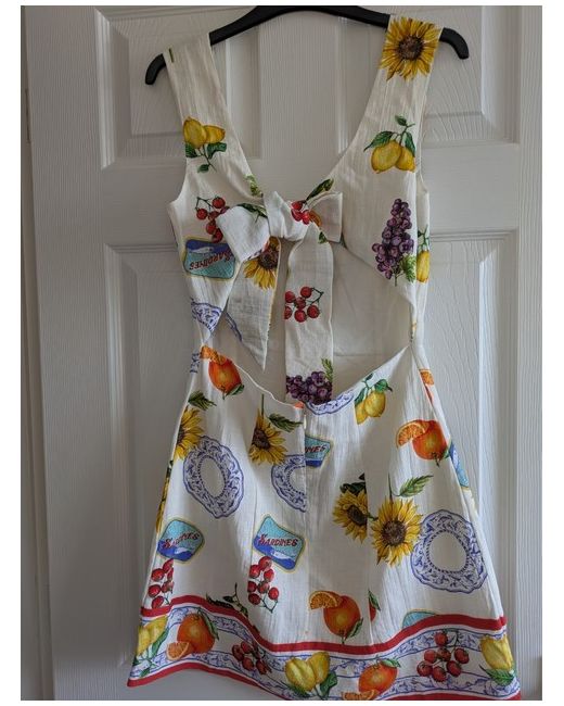 White Fruit Mediterranean Patterned Bow Back Mini Dress XL BNWT