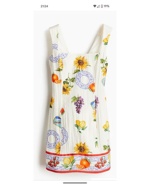 H&M White Floral Fruit Patterned Bow Back Mini Dress Uk Size Extra Large.