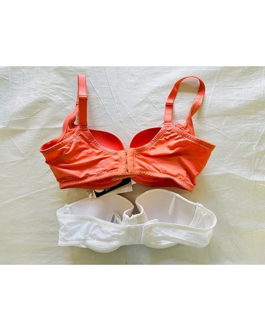 Women's Pink 2 x White Padded Strapless Bra BNWT Strap Push Up Underwired 34A
